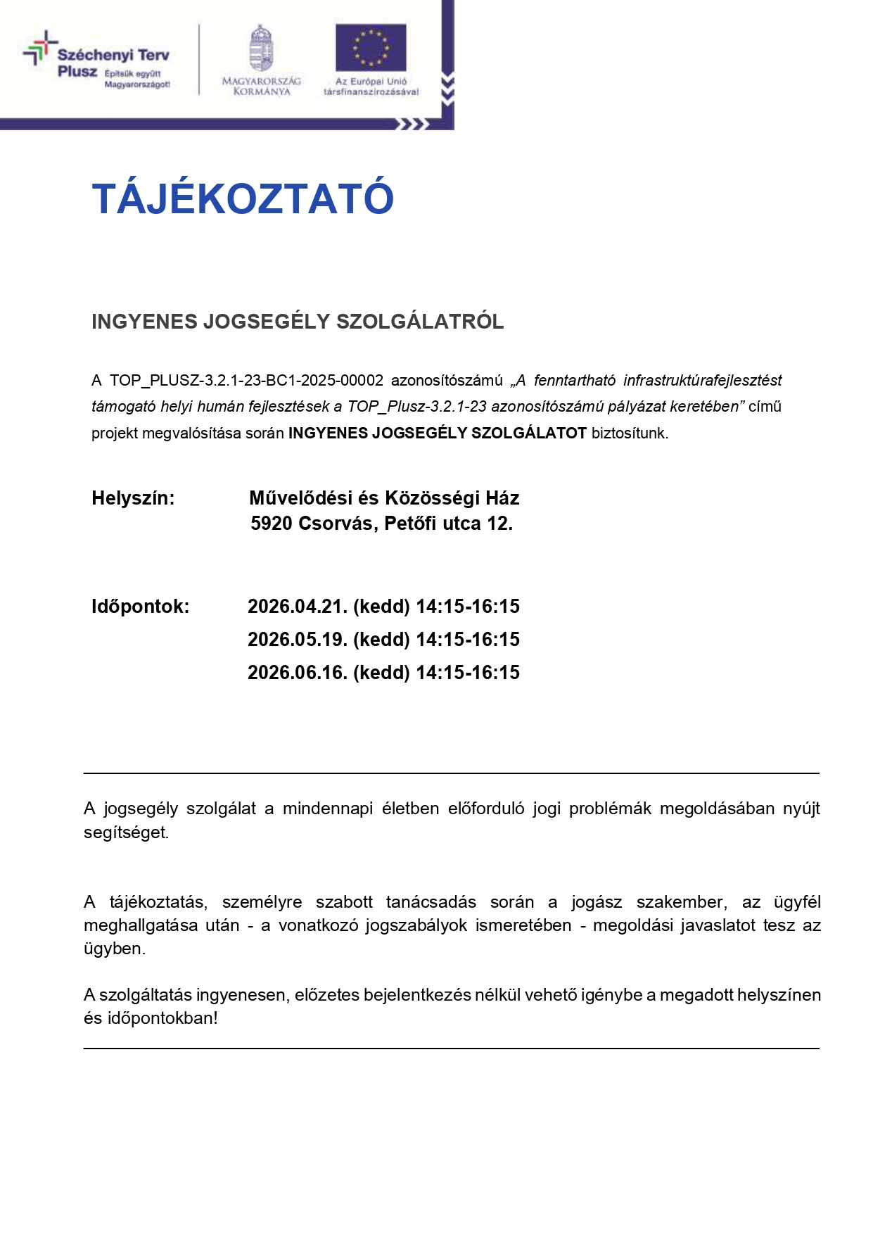 TÁJÉKOZTATÁS